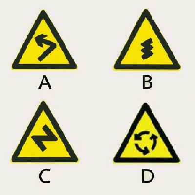 23/25 图中哪个标志提示驾驶人连续弯路?