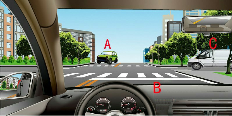 22/25 无信号灯的十字交叉路口,三辆直行的车辆,应按什么顺序优先通行?