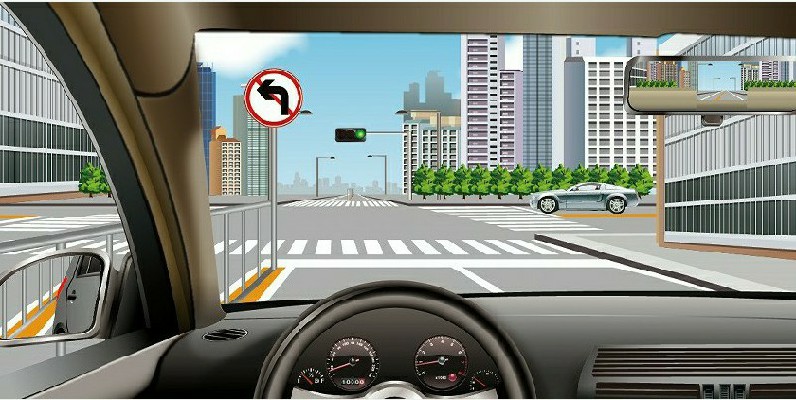 15/25 驾车遇图中右前方标志,以下说法正确的是()。