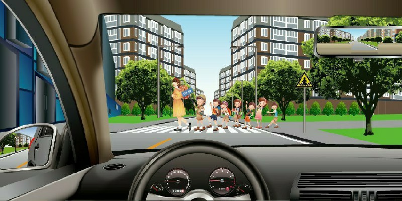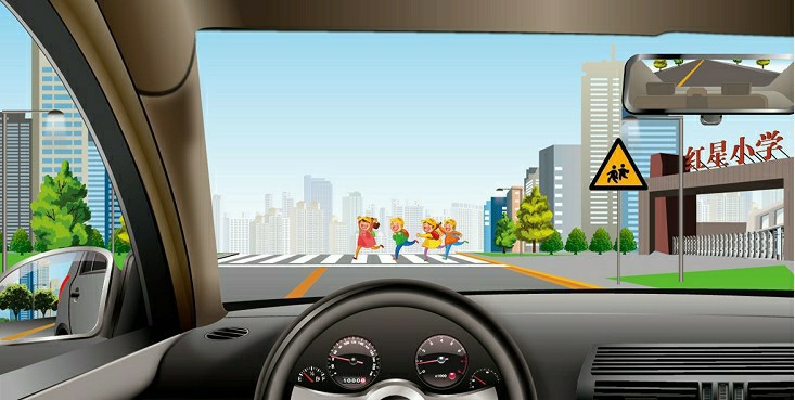 17/25 如图所示,驾驶机动车在学校门口遇到这种情况怎样行驶?